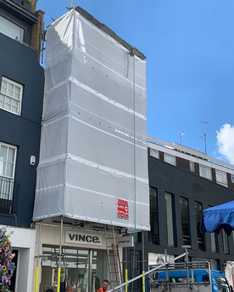 - Full perimeter scaffolding for commercial and retail buildings